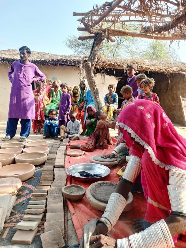 Volunteers started by visiting the neighbouring villages of Jaloo Jamadar, Kewal Goth, Taj Mohammad to meet the locals and undertake surveys, and conduct hazard mapping and research.