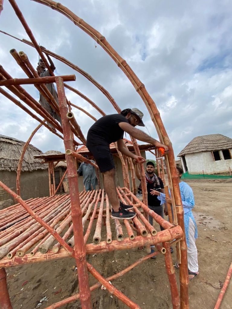Participants presented their design proposals for floating structures constructed from bamboo, two of which were then built with support from local villagers, with the aim being to build a structure that could act as a refuge for villagers amidst the flooding in rural Sindh that continues to displace thousands of people each year.