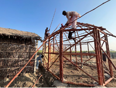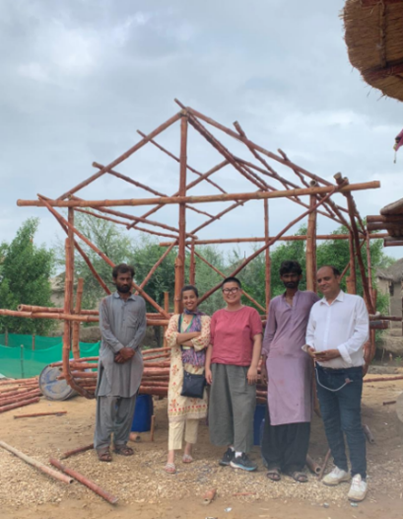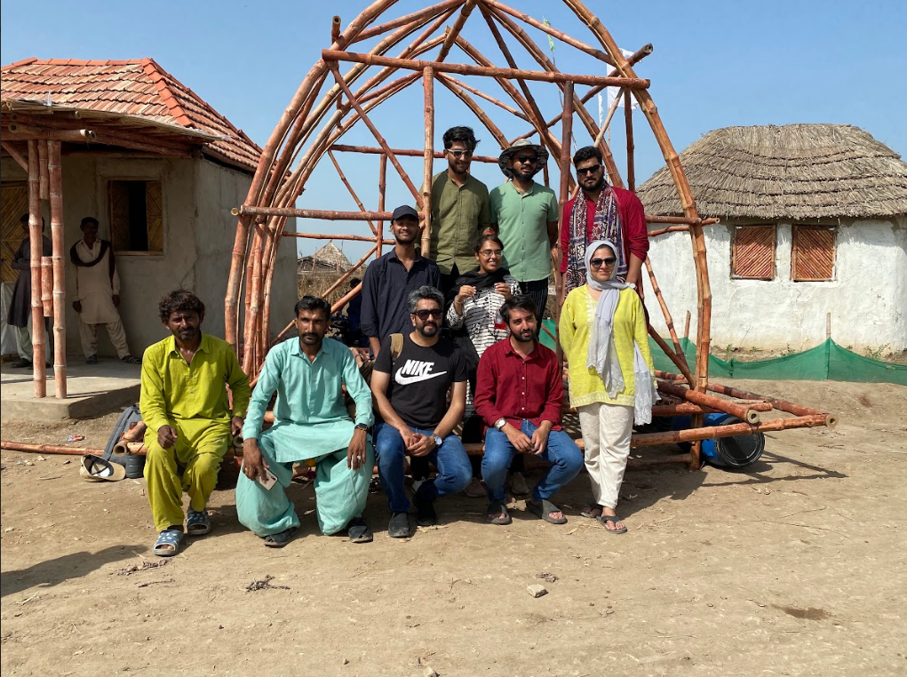 Delegates spent 1-2 weeks embedded in Yasmeen Lari’s innovative programmes in Sindh, focusing on Pono village and its surrounding villages, such as Jaloo Jamadar and Kewal Goth. They contributed to ongoing projects in local infrastructure, including designing bamboo-based furniture, researching flood-resilient and traditional design in housing and construction, learning about the bamboo-based LOG (Lari OctaGreen) houses introduced by Yasmeen Lari, and assisted in the construction of a local school based on the LOG house design.