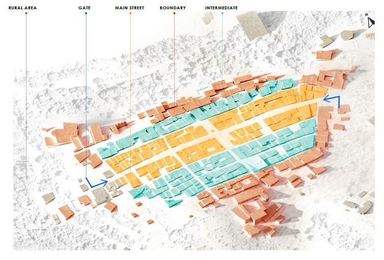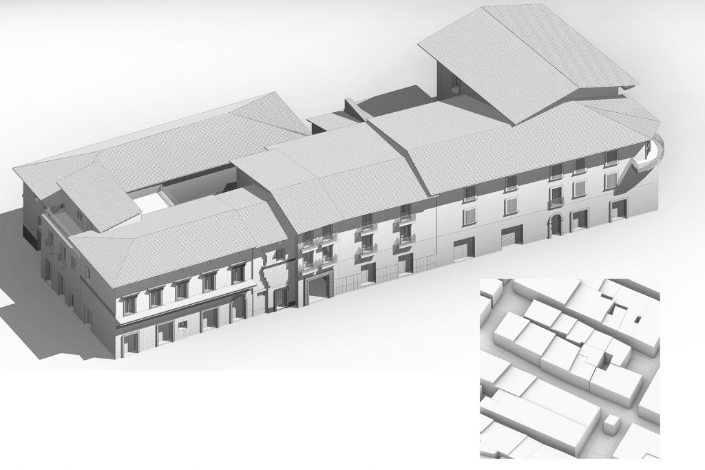 The project uses algorithmic simulation and the application of heritage BIM architectural libraries and typological models to formulate designs for the town’s reconstruction.