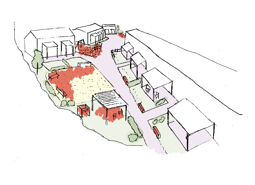 Sketch illustrating how communal space can be integrated into temporary housing. L. Gregori