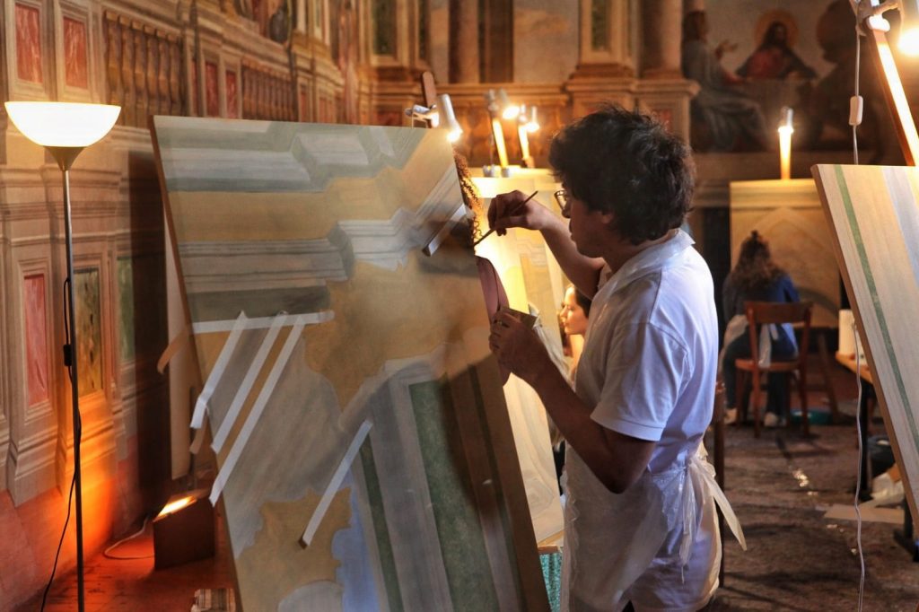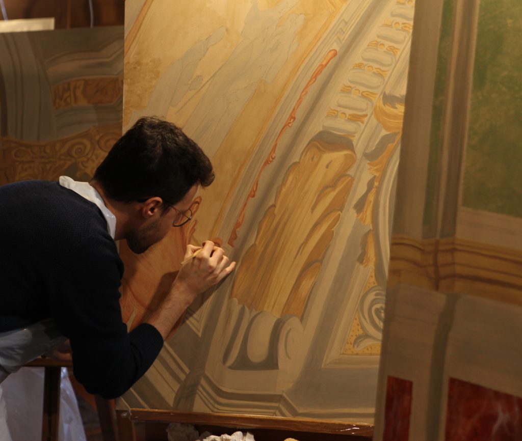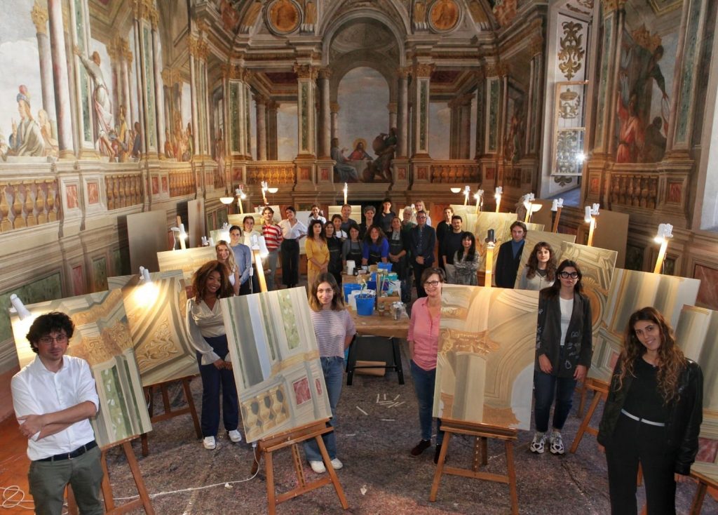 Participants immersed themselves in both theoretical and hands-on workshops, discovering the secrets behind this magical art of optical illusion. They worked under the frescoed ceilings of Andrea Pozzo, surrounded by masterpieces of the very craft they were learning. The event was guided by an exceptional team of experts, including esteemed scholars such as Prof. Giuseppe Amoruso (Polytechnic of Milan, INTBAU Italy), Prof. Antonio Camassa (CNR), alongside master decorative painters Roberto Lucifero and Riccardo Cardone.