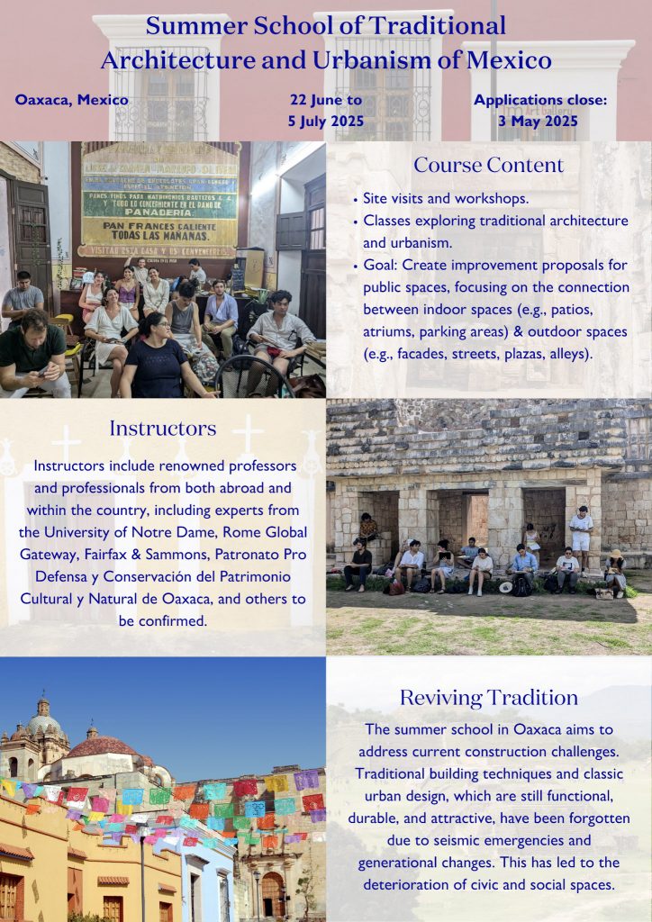 Summer School of Traditional Architecture and Urbanism in Mexico City, from 29 May – 14 June.