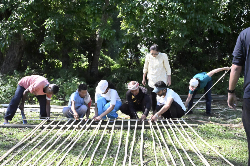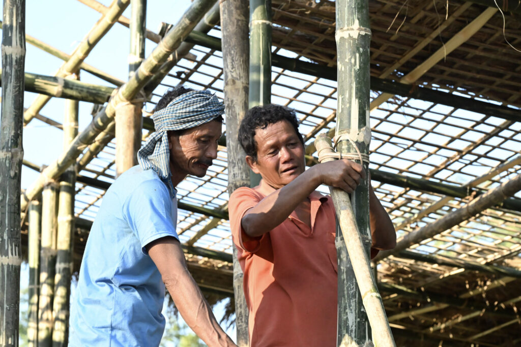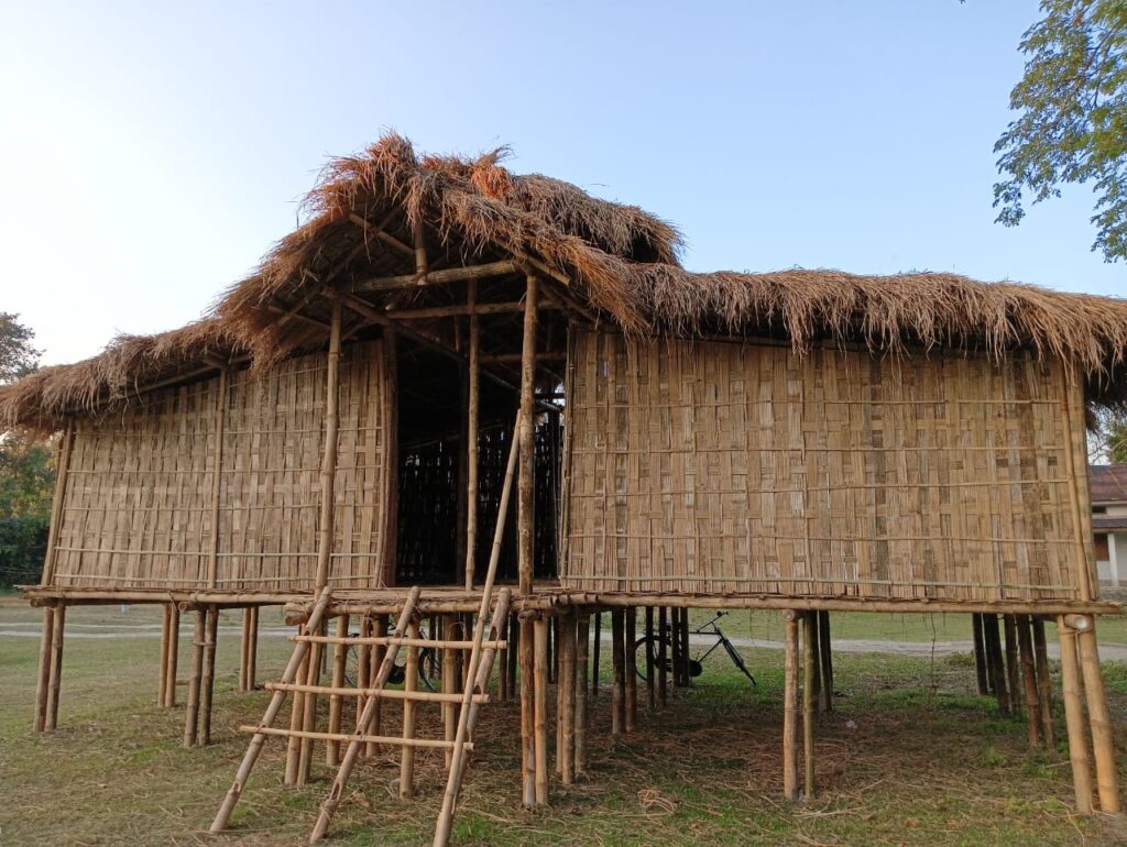 Their design introduces a bamboo-reinforced soil foundation system, using locally available Bhaluka Bah bamboo to resist erosion and provide durable, low-cost housing. The new dwellings integrate sanitation, modern amenities, and improved thermal comfort while retaining the architectural language of Mishing traditions. Training programmes for artisans and young people will revitalise bamboo craftsmanship and ensure skills are passed on.