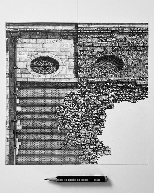 Another Honourable Mention was given to Minty Sainsbury, for her highly detailed pencil render of St Stephen Walbrook Church in London.