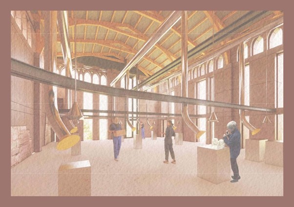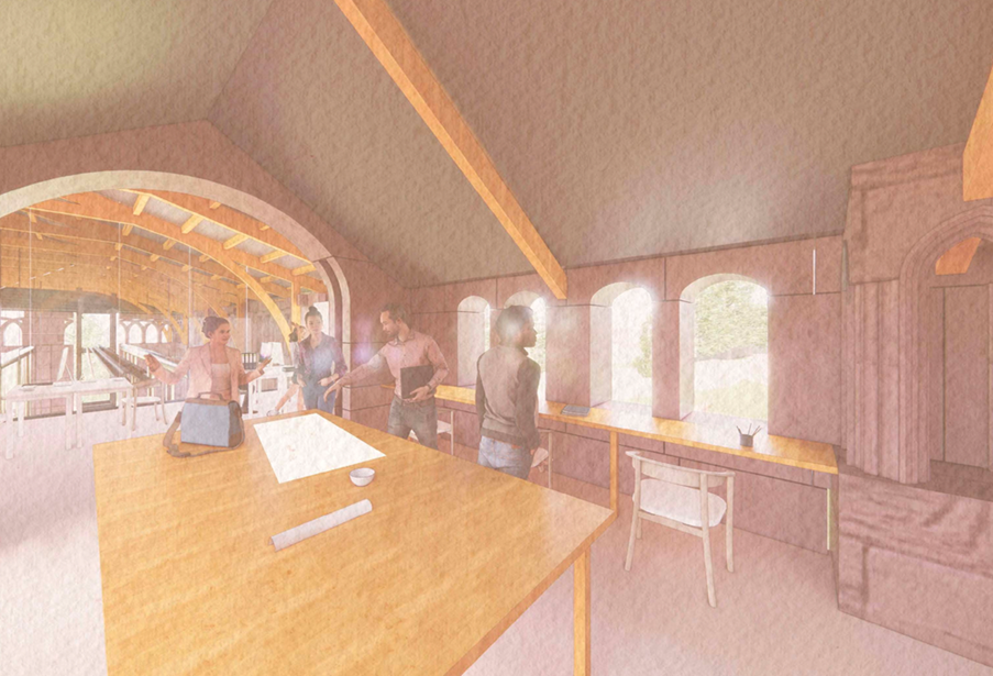 This year’s First Prize for the Best Student Project went to Luke Alcock, for his design for a Crafthouse in the Old Dorter Ruins of Worcester Cathedral.