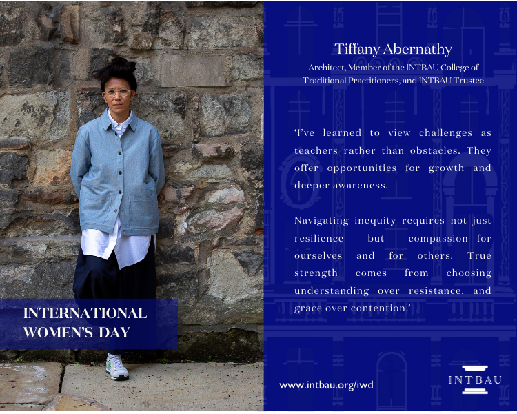 Tiffany Abernathy, an architect from the US, reflects on the profound impact women have had on traditional building, architecture, and urbanism. She highlights the inspiring work of figures like Elizabeth Plater-Zyberk, Yasmeen Lari, and Carmen Añón Feliú, who continue to empower younger generations through their leadership and teaching. For Tiffany, the essence of their influence goes beyond titles or accolades. It is found in their courage, humility, and unwavering commitment to culture, community, and sustainability. Their approach to leadership is intuitive, holistic, and deeply connected to both humanity and nature. Their legacy is one of care, resilience, and responsibility toward the world.