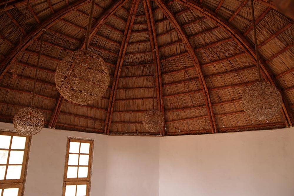 “Local artisans,” she replied, “and those who have been trained as part of Heritage Foundation’s Barefoot Incubator for Social Good and Environmental Sustainability, are building the Centre. Some are specially skilled in construction of bamboo curved forms and techniques of thatching utilising local grass. The walls, consisting of prefabricated bamboo panels, lined with reed matting and lime stabilised mud plaster, are fabricated by a village of former beggars, now known as Baans (Bamboo) Village. Several in the community have been trained in bamboo assemblies with support from British Council’s DICE (Developing Inclusive Creative Economies) program.”