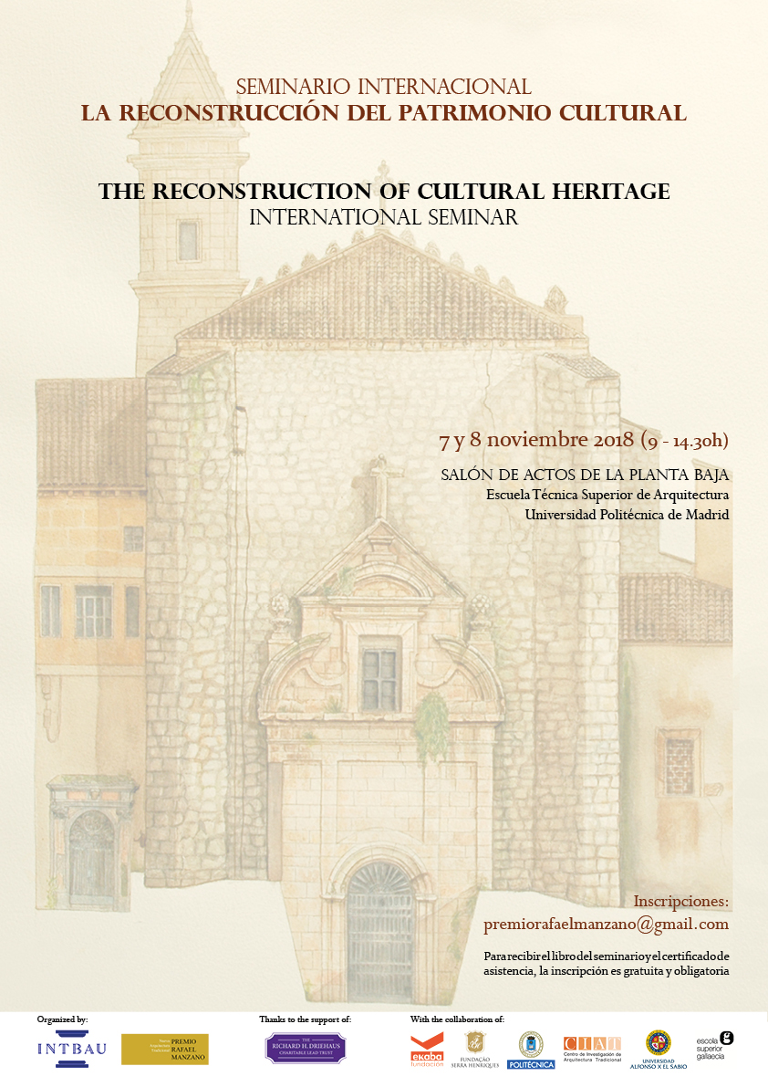 The International Seminar which is organized annually by INTBAU and the Rafael Manzano Prize will be held at the School of Architecture of the Universidad Politécnica de Madrid (ETSAM) on November 7 and 8, 2018.