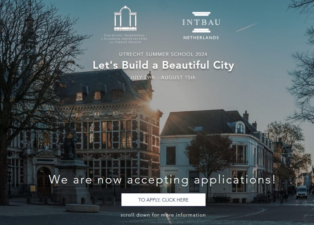 The Traditional Architecture Group, host to INTBAU UK, organised the webinar ‘Traditional Architecture Summer Schools – An Open Table Discussion on Traditional Architecture & Urban Design Summer Schools,’ featuring some of the most outstanding summer programmes from our network and beyond.